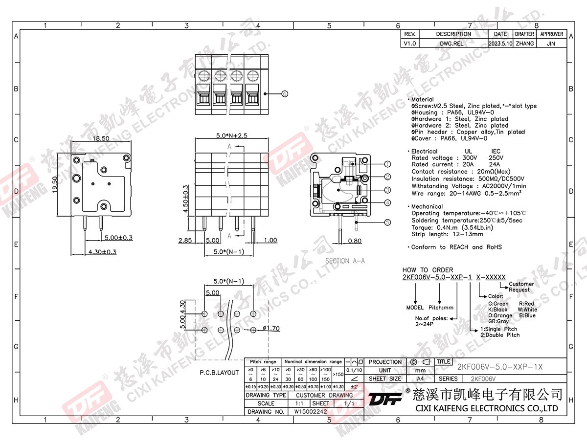PCB Terminal Block 2KF006V-5.0mm