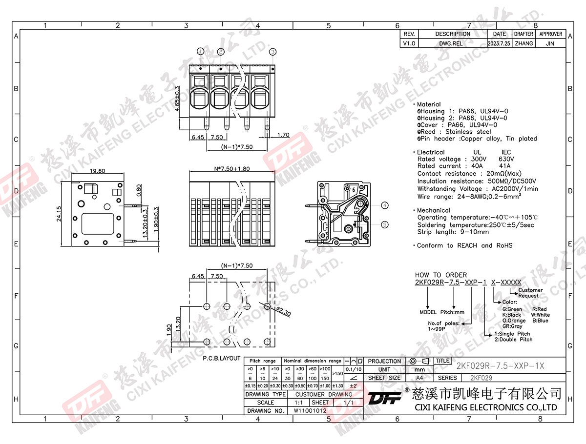PCB Terminal Block 2KF029R-7.5mm