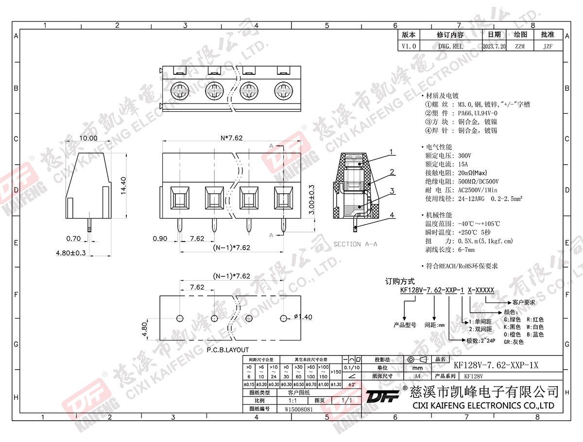 固定式接線端子 KF128V-7.62mm